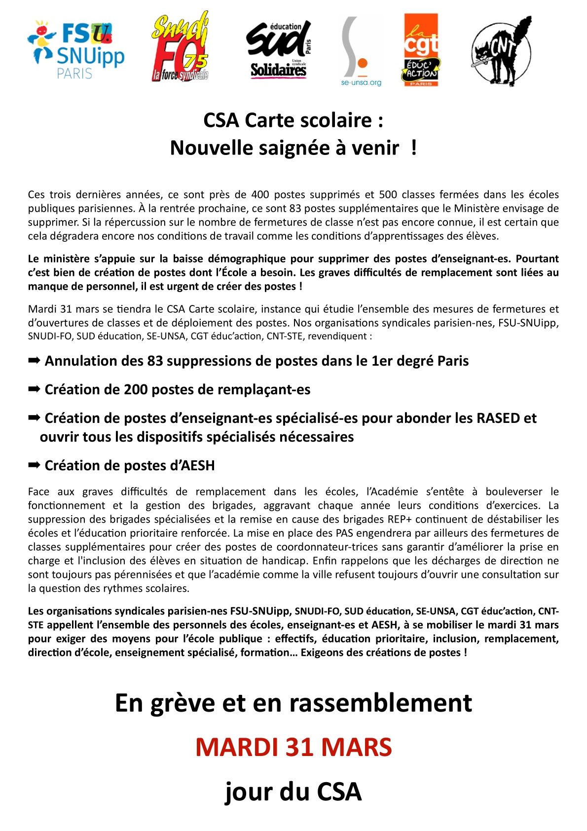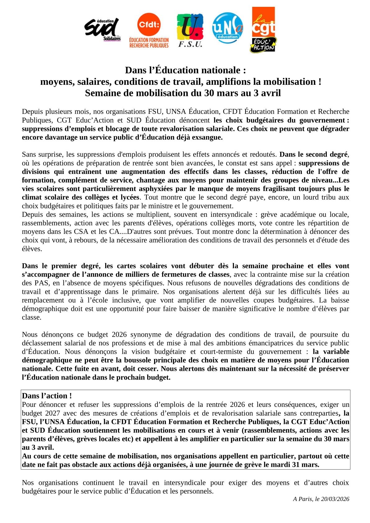 Rentrée 2026 : toujours mobilisé-es contre les fermetures de classes ! Grève et rassemblement le 31 mars !